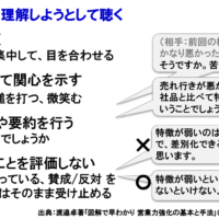 ところでオンライン商談でなくなった雑談には、どういう意味があるのでしょうか。商談前の別の仕事から思考モードを切り替えて当商談に集中してもらう、お互い打ち解けることで本音を言いやすくなる効果があります。対面だとお互いの表情、視線の投げかけや手ぶりから、五感を総動員して関係性を強めて、関係づくりをしていくのです。
